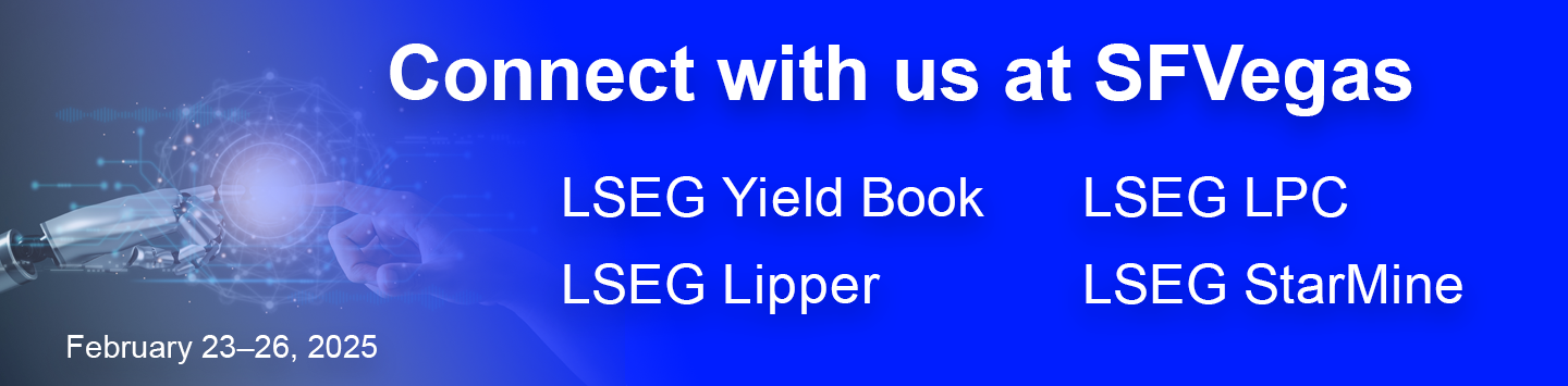 LSEG Data & Analytics offers a one-stop solution for all our clients’ analytics needs, spanning across best-in-class datasets, asset coverage and services. Providing market-leading models, granular cashflows, real-time user-specified curves, robust derived analytics and integrated workflows that enables our buy-side and sell-side clients globally to access analytical solutions across the breadth of their business requirements. Our suite of advanced analytics products and solutions include Yield Book, Lipper, StarMine, and LPC. Visit our website to learn more about how you can turn data into actionable and AI powered insights.
