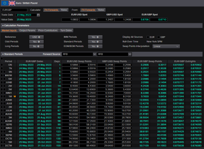 LSEG FX has deployed this best practise methodology, leveraging the breadth of data, analytics and liquidity available within LSEG FX to provide a full suite of turn-date impact-adjusted forward FX curves across a broad range of currency pairs (available on Workspace via page FXBD, via quote <FXBLEND>, or FX Forwards analytics FWDS)